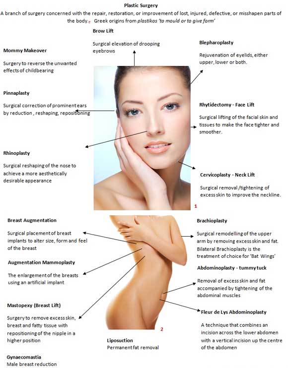 Εάν είστε στα πρώτα στάδια του σχεδιασμού μιας πλαστική χειρουργικής επέμβασης, τότε έχετε πολλές πιθανότητες να συναντήσετε μερικούς από τους παρακάτω όρους.